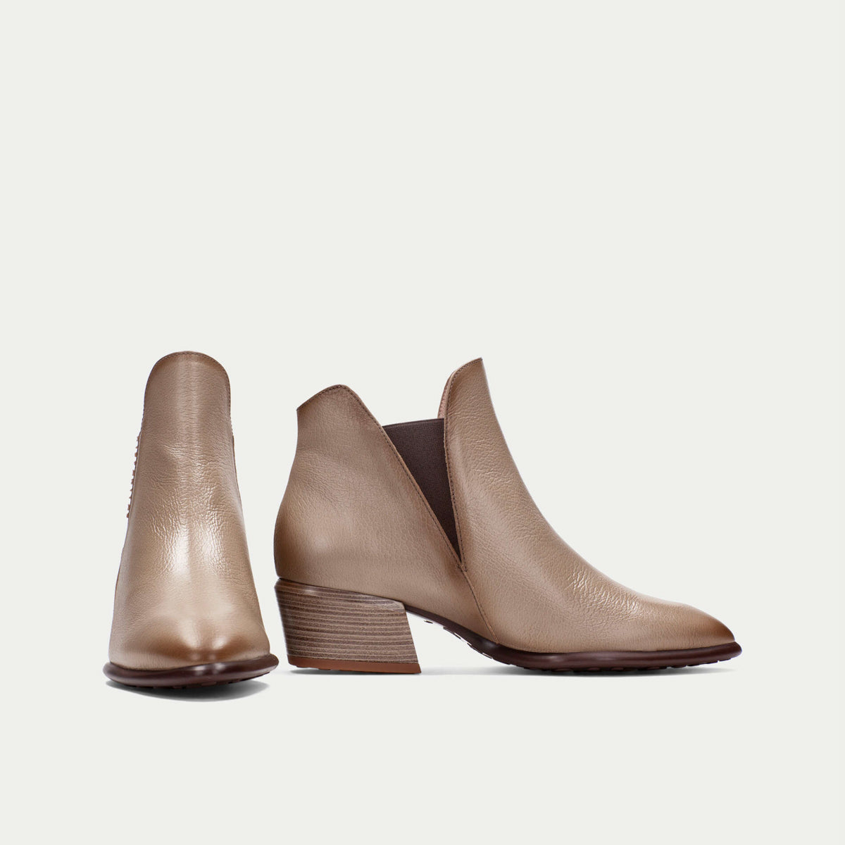 The Verona family of boots offer a flattering mix of options for the winter wardrobe. Verona in topo (taupe) is a classic option for everyday wear with a smooth leather, elastic gusset on the outside of the boot and inner zip fastening. Dress up or down with ease. Featuring a pointed toe, Cuban mid block heel, cushioned insole and flexible rubber sole. The perfect everyday option you'll reach for now and many seasons to come. Made in Spain. European sizing. Leather upper, microfibre lining, cushioned vegan leather insole, rubber sole. Mid heel, 4cm.