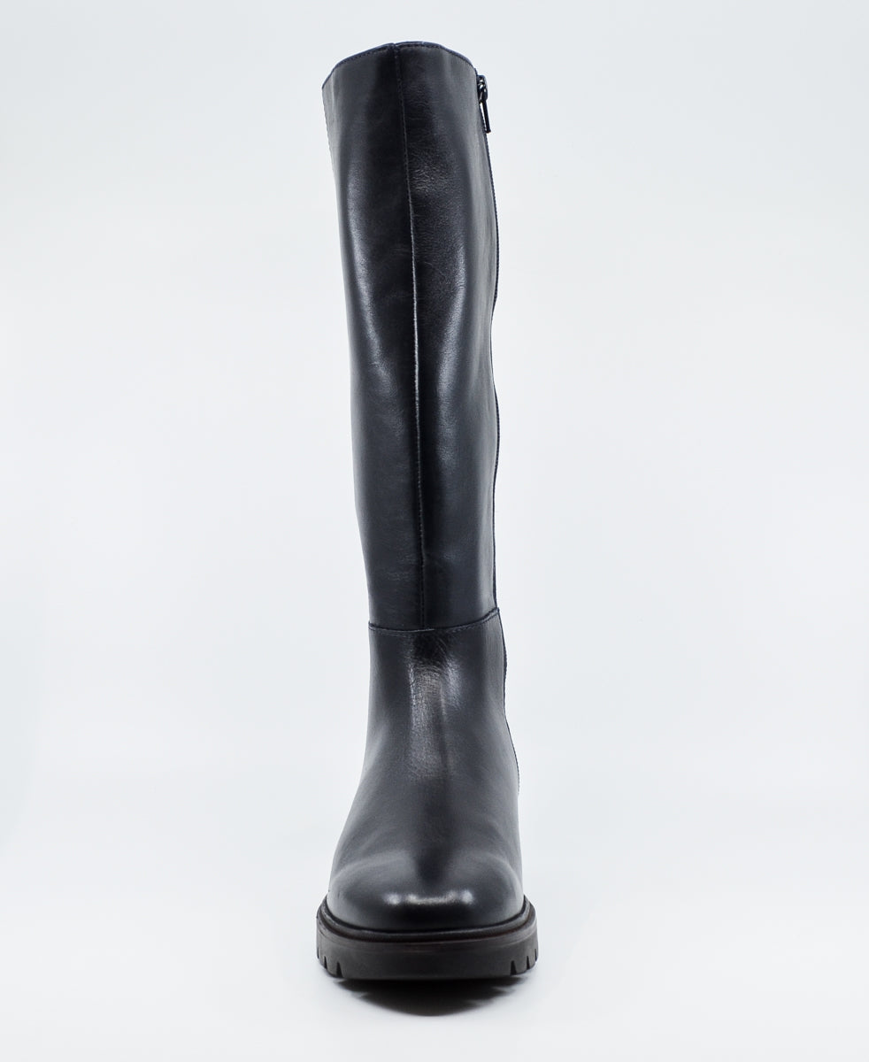 A rare find! Searching for a navy long boot? This classic everyday knee high boot by best selling brand, Ara is the perfect fit. Featuring convenient inner zip fastening, warm velveteen lining, a rounded toe, flat heel, and extra tred sole. Inside you'll find Ara's ultra comfortable and supportive High Soft removable insole, which you can also remove to place your custom orthotic. The soft leather and suede upper provides comfort for all day wear. UK sizing. Designed in Germany. Made in India. Leather upper, material lining, rubber sole. Flat heel.