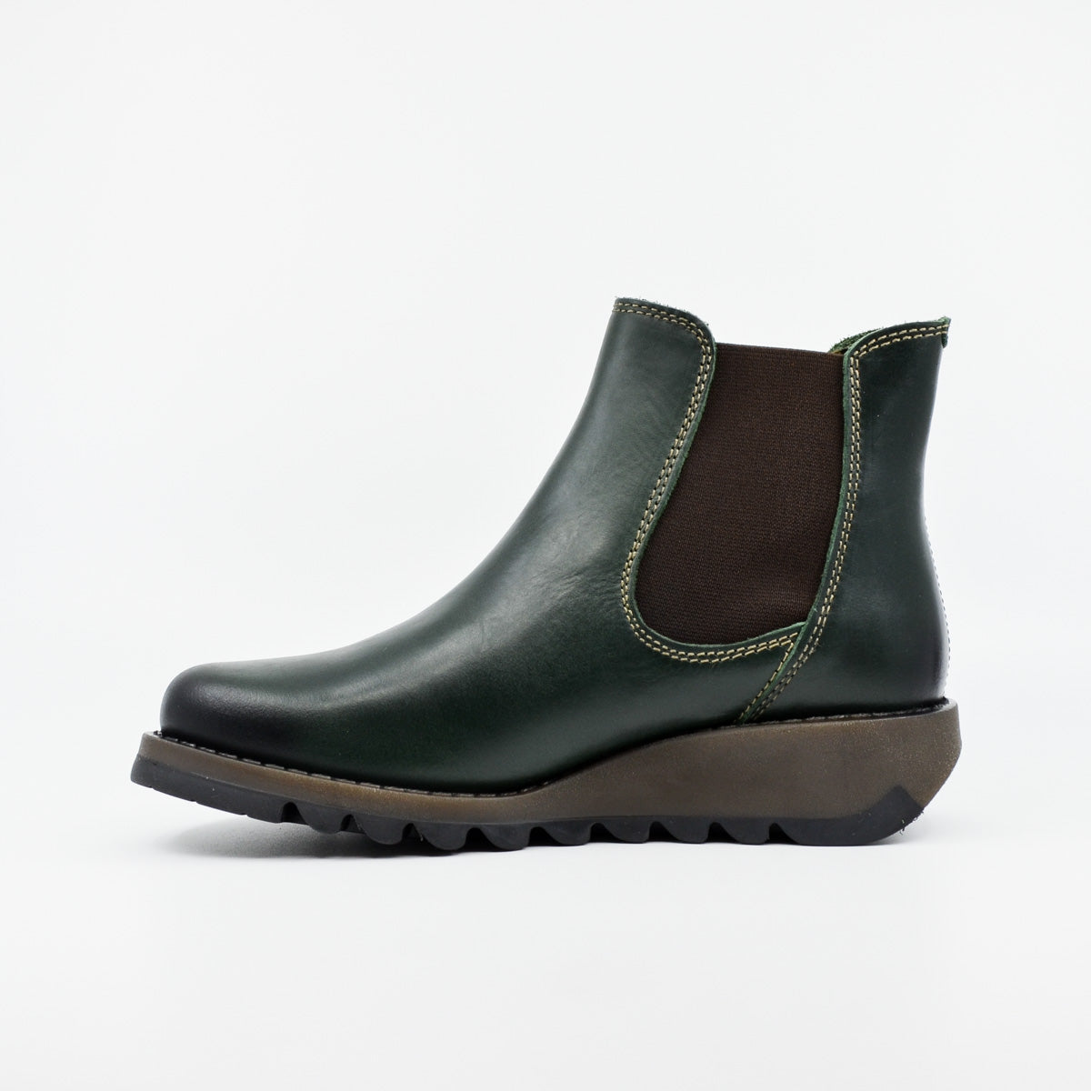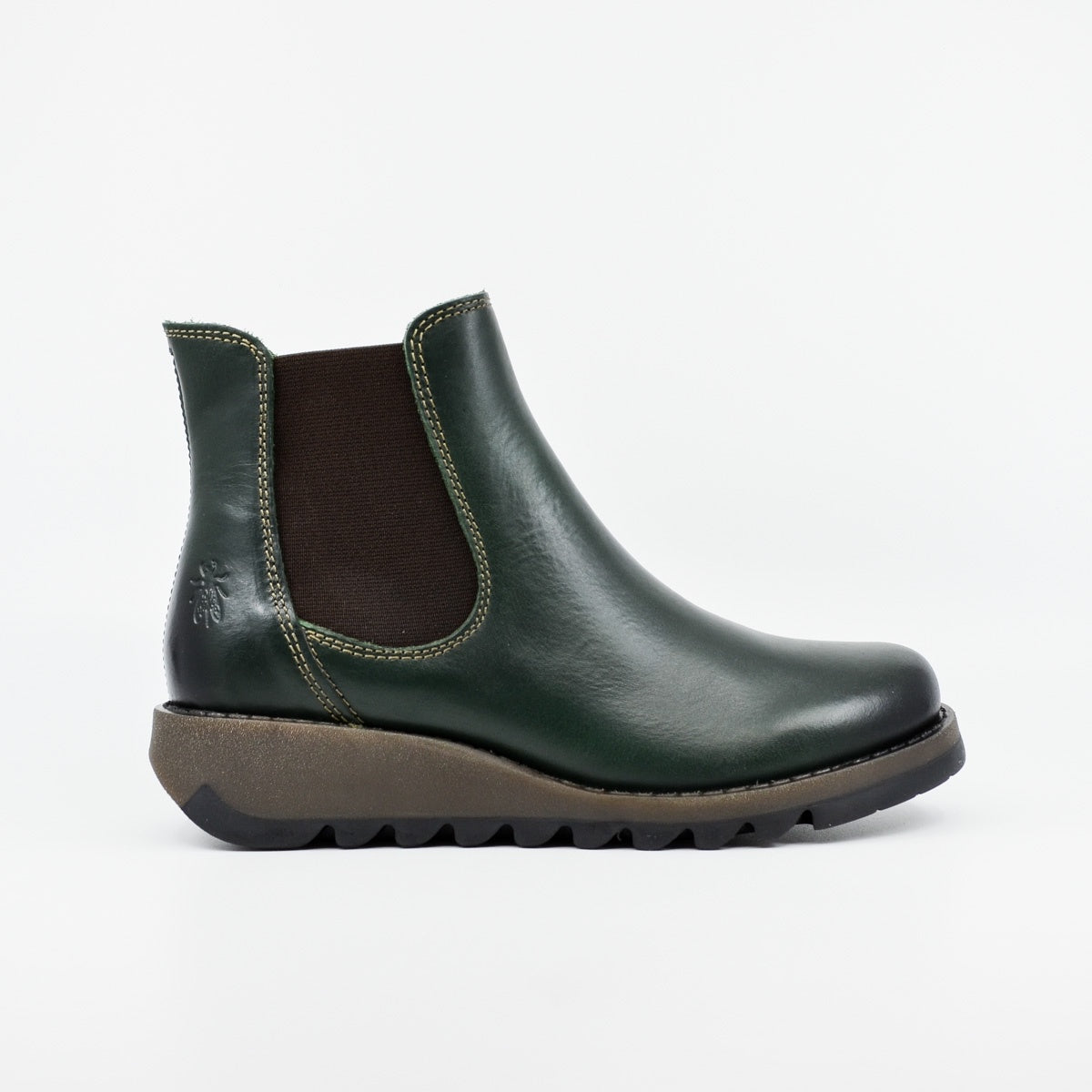 The Salv boot is a classic and iconic Fly London look. This Chelsea style ankle boot features a cushioned rubber wedge sole, elastic gussets, rounded toe and low wedge heel. Comfort and cushioning is built into every pair of Fly London shoes. Made in Portugal. European sizing. Leather upper, leather and warm textile lining, rubber sole. Flat heel.