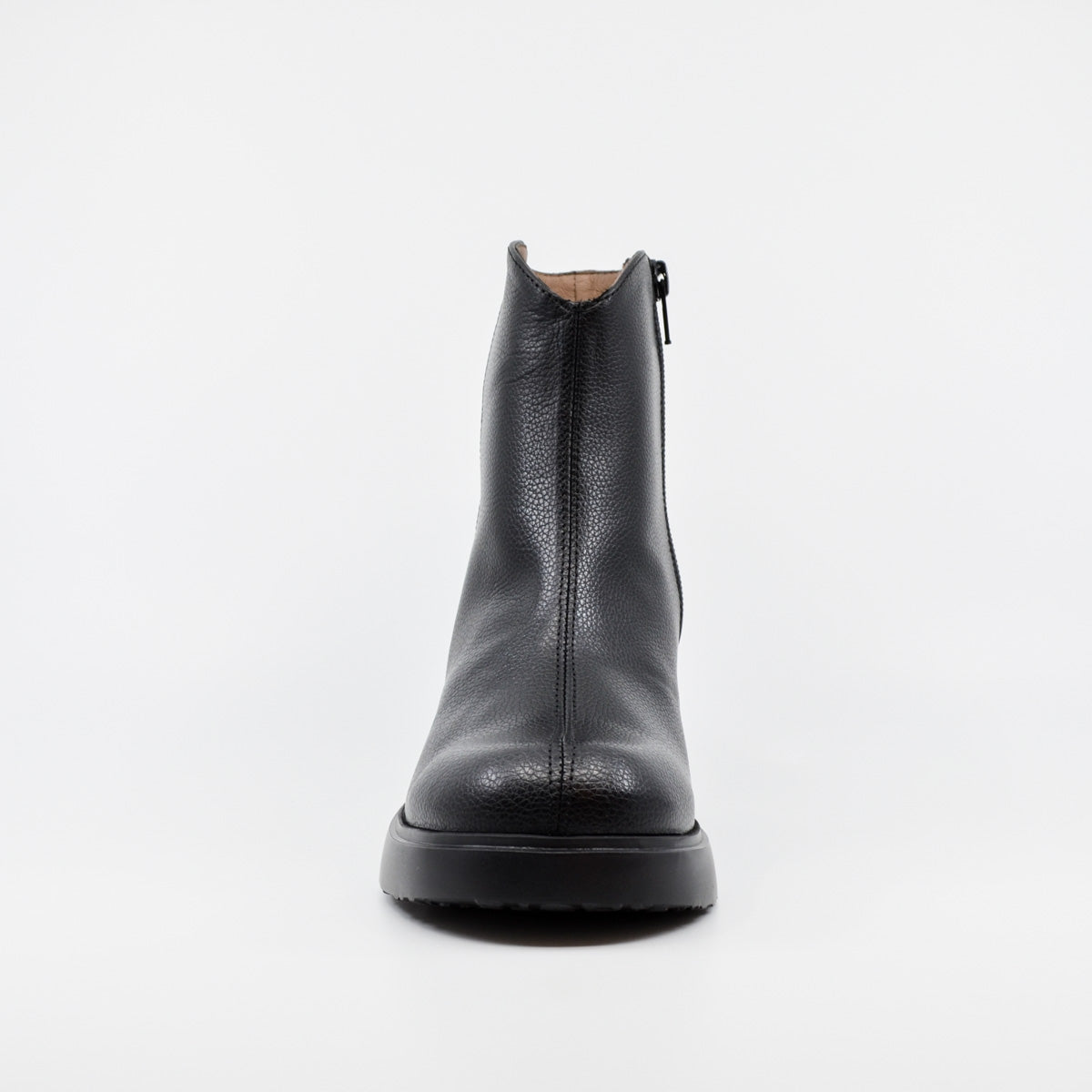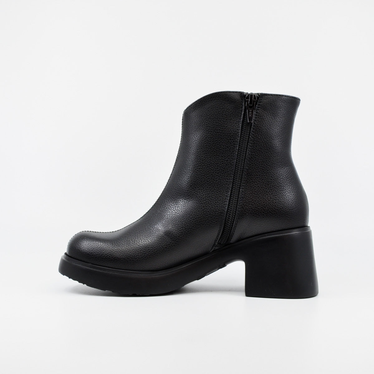 A bold and chunky leather ankle boot, perfect for everyday wear. Featuring a round toe, convenient inner zip opening, memory foam footbed, leather lining and comfort rubber platform sole. European sizing. Made in Spain. Leather upper, leather lining, rubber sole. Mid heel, 6cm (includes 2cm platform).