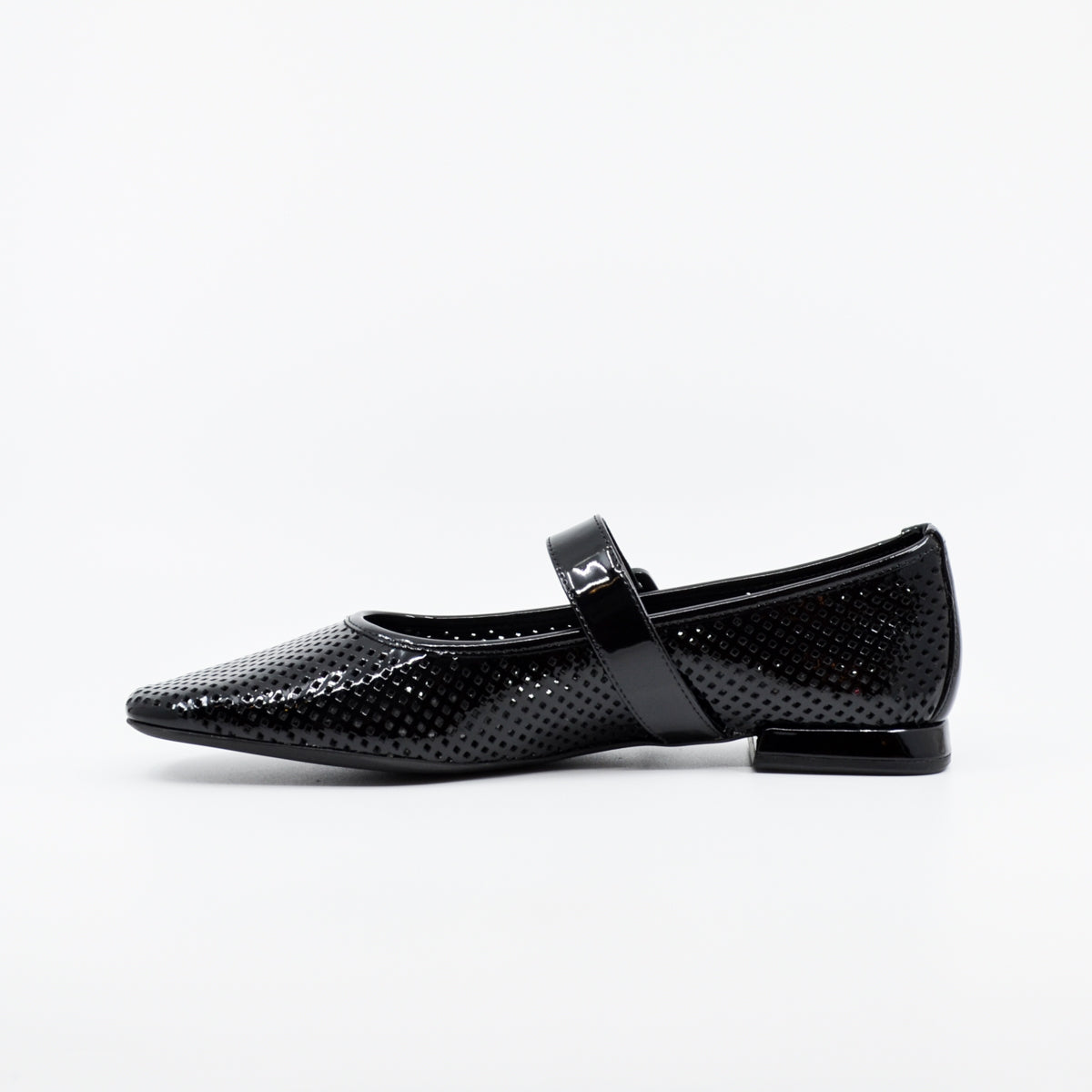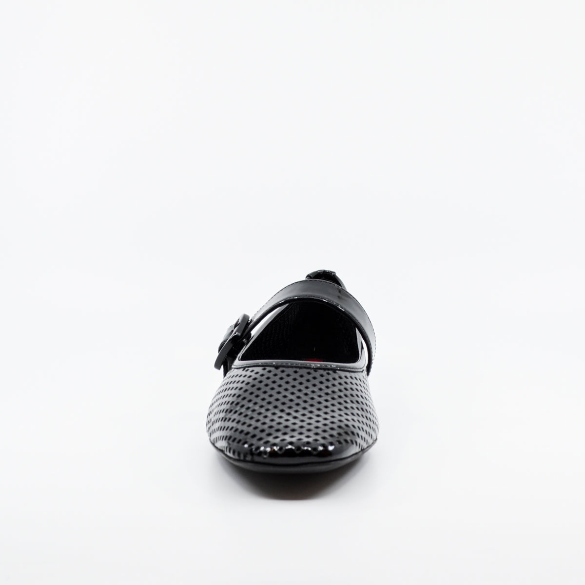 Fashionable Mary-Jane style mesh flats by Hogl. Made from extremely soft leather with perforations throughout, and completely leather lined, these flats offer a polished and fashionable look for any wardrobe. Available in black and red. Featuring a rounded toe, adjustable strap over the instep with buckle fastening and soft heel counter. Wide C fit. UK sizing. Made in Hungary. Leather upper, leather lining, rubber sole. Flat heel.
