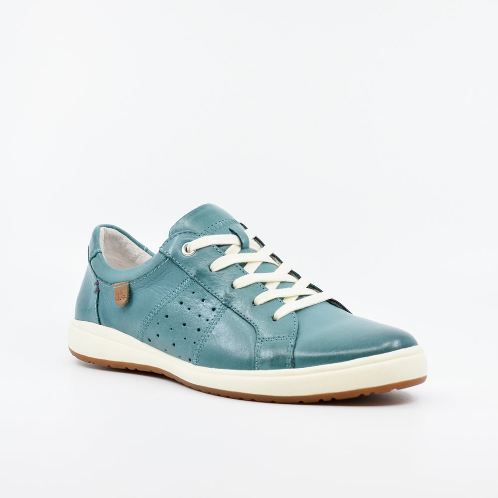 Josef Seibel's best selling leather sneaker, Caren 01 is perfect for travel and walking. This sneaker is lightweight and features a low construction that offers comfort and support with its soft leather upper, removable contoured insole and wide rounded toe. Cotton lace fastening . May fit some custom orthotics. European sizing. Leather upper, leather & material lining, rubber sole. Flat heel.