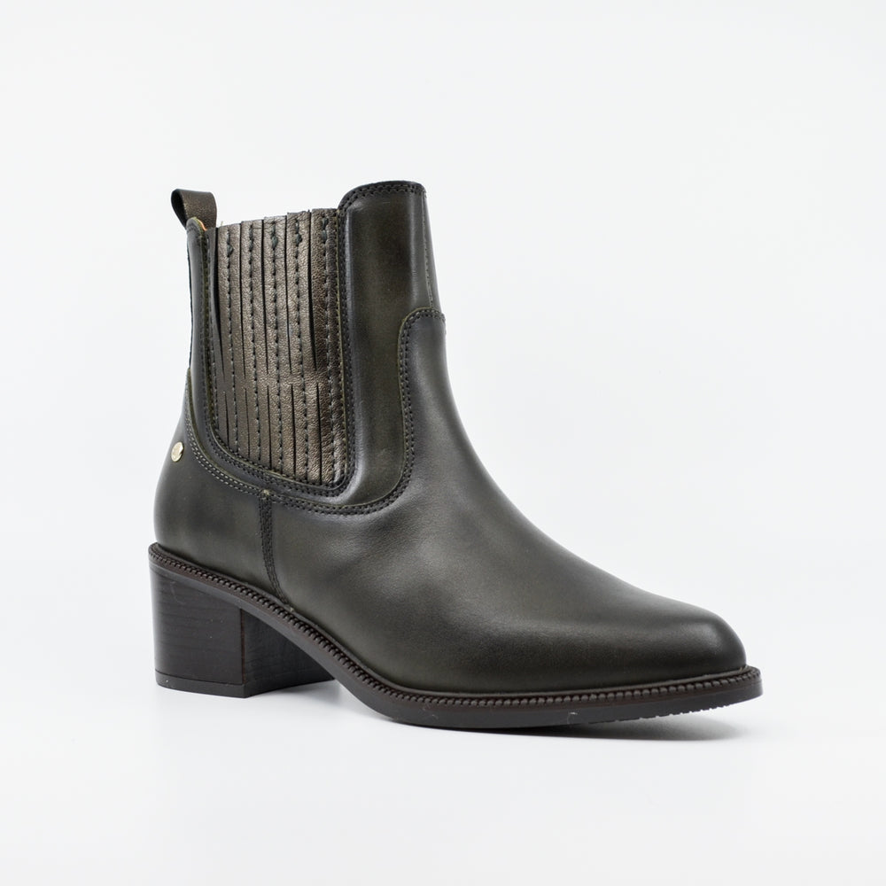 A classic Chelsea boot, perfect for everyday wear, made with Pikolinos's signature soft leathers. Available in forest and cognac. This high cut ankle boot features an inner zip fastening, and elastic panel on the outside of the ankle. A classic cut you'll live in now, and for many seasons to come! Inside, the foot is supported with a cushioned leather lined insole, and a warm microfibre lining. Original design from Pikolinos. Made in Spain. Leather upper, warm textile lining and rubber sole. Mid heel, 4.5cm.