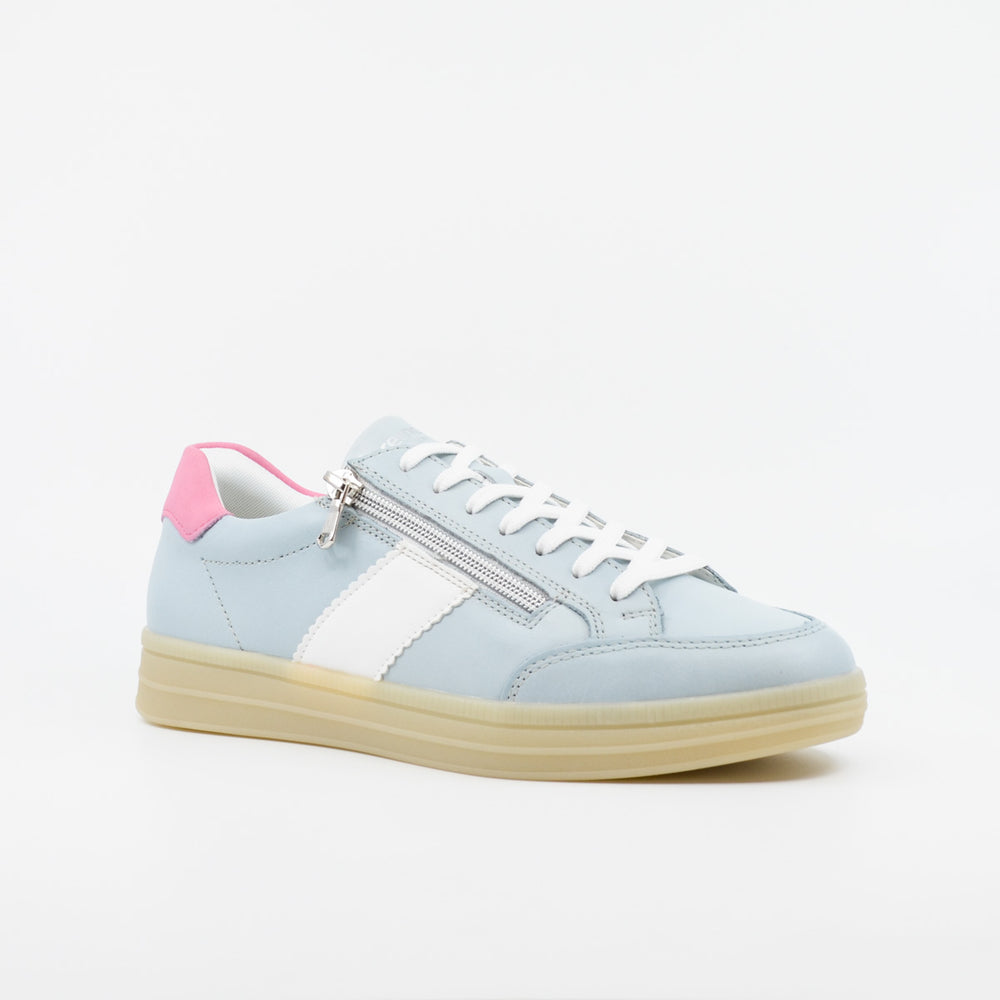 This sneaker delivers a bold pop of color for your summer wardrobe! Available in fuchsia and blue. Featuring a classic low-profile design, adjustable cotton lace fastening and rubber sole. The removable insole is padded and cushioned throughout with support under the arch and heel for all day comfort. May fit custom orthotic. A lightweight design perfect for travel. European sizing. Leather upper, textile lining, rubber sole. Flat heel.