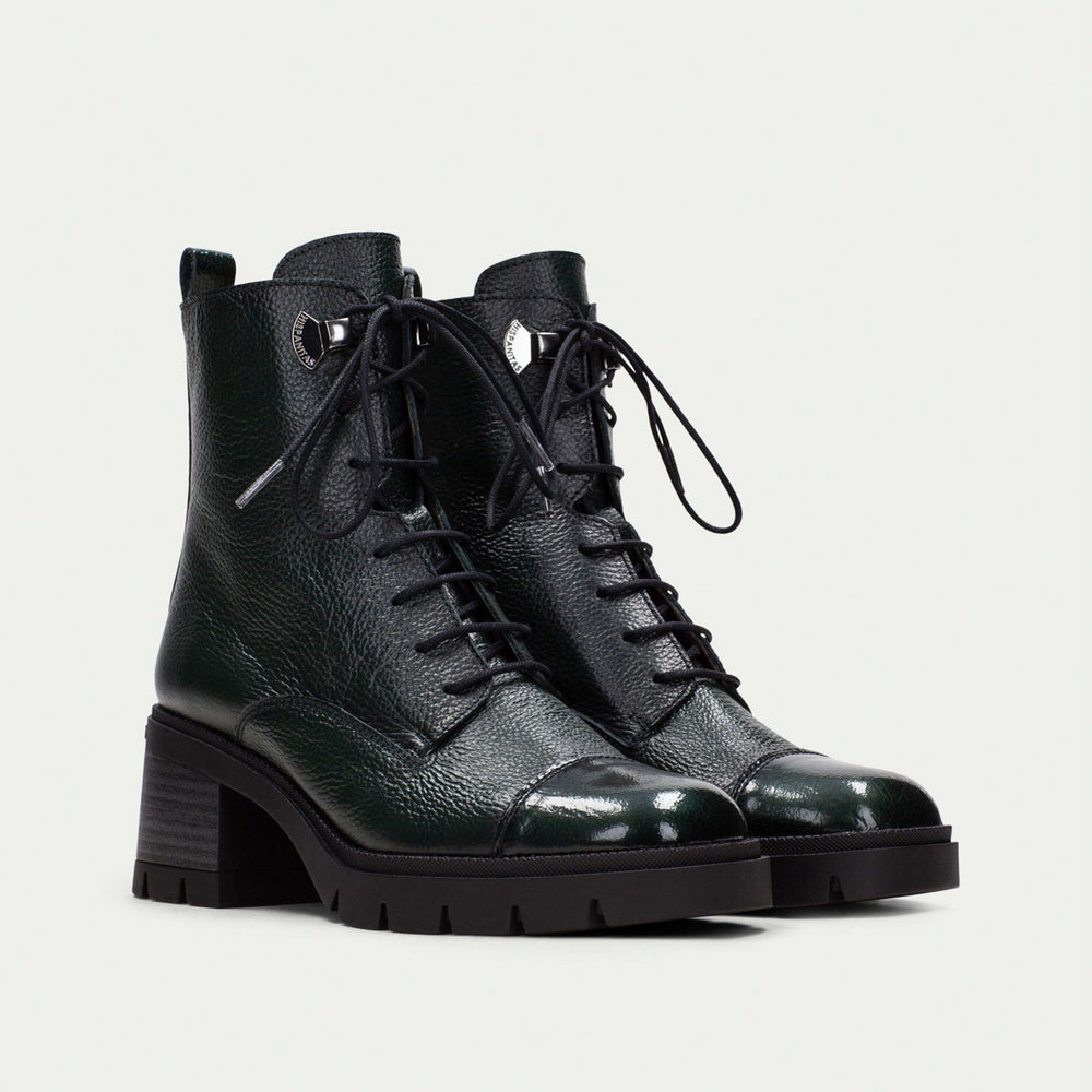 A military style lace up leather ankle boot. Featuring a rounded toe, lace-up fastening with a convenient inside zip opening, mid block heel, cushioned triflow insole, and soft leather upper. The extra tred on the rubber sole is perfect for wet weather and all day wear when you're on your feet! Contains the Hispanitas "on steam" microfibre lining for breathability and thermoregulating properties. European sizing. Made in Spain. Leather upper, vegan leather lining, rubber sole. Mid heel, 5 cm.
