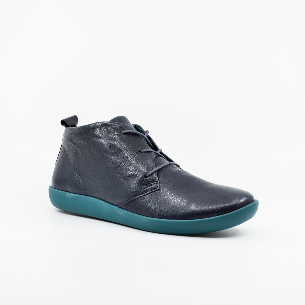 An classic low cut suede leather lace up ankle boot by sustainable fashion brand, Think!. The Nature ankle boot features a soft suede leather upper, a wide square cut toe, removable leather covered cork footbed and soft latex sole, which dampens each step protecting ligaments and joints. Fully adjustable cotton laces with Think!'s signature red tips. May fit custom orthotics. Expertly and thoughtfully crafted, you will enjoy Think! shoes for a very long time! Made in Bosnia. European sizing. Leather upper, leather lining, latex sole. Flat heel.