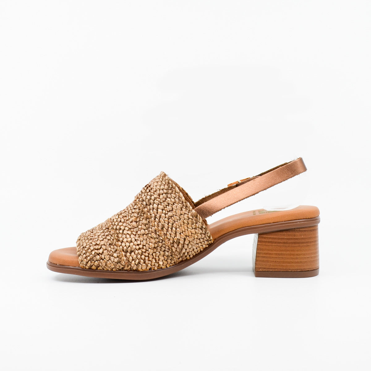 Inspired by this season's raffia look, this stylish woven leather sandal is the perfect blend of fashion and function. The soft leather upper completely moulds to the foot on first wear, and is great upper for bunions and sensitive toes. Featuring a peep-toe cut and slingback adjustable strap with buckle fastening. Wear with dresses or pants with ease. European sizing. Made in Spain. Leather upper, leather lining, rubber sole. Mid heel, 5cm.