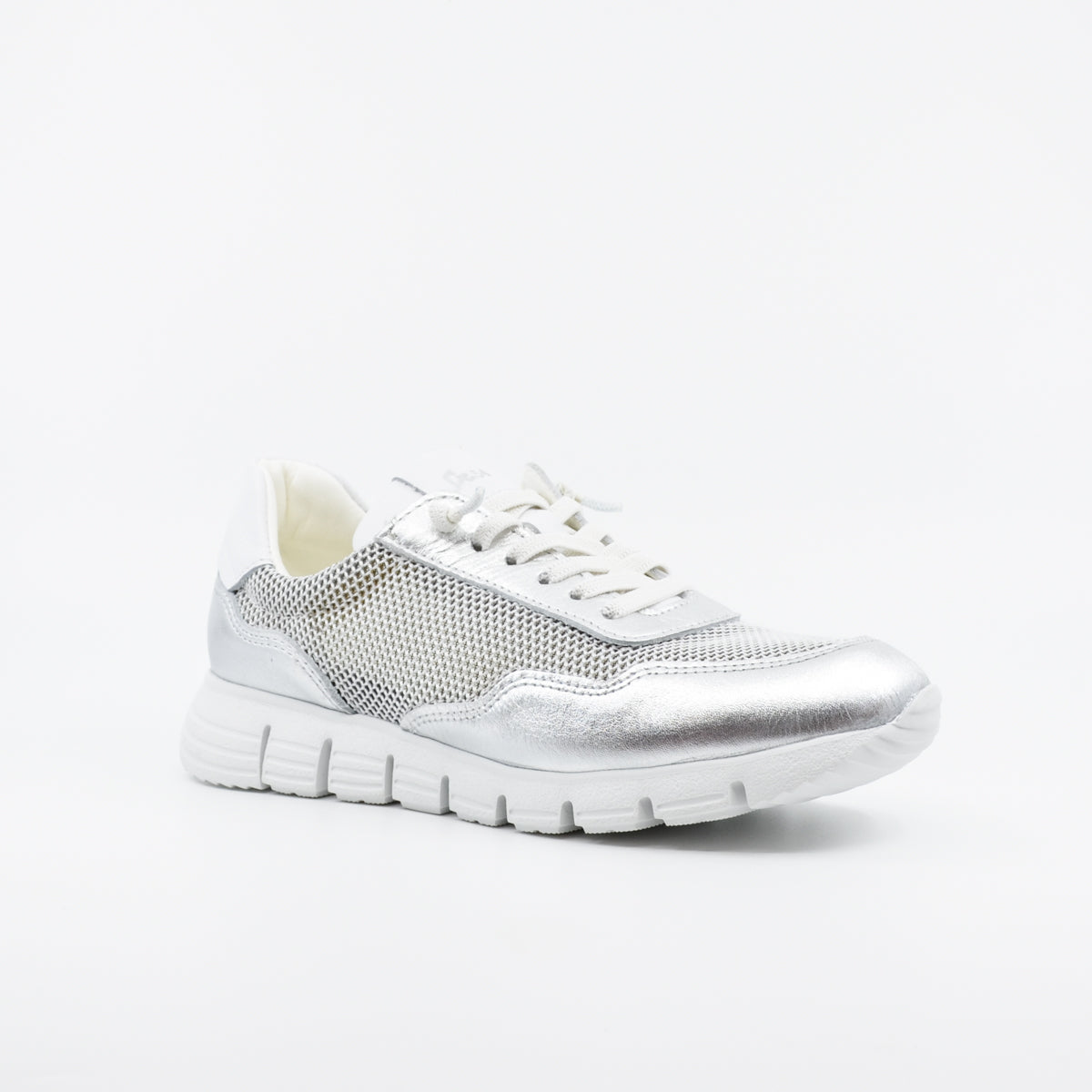 Soft casual leather sneaker for everyday wear. This classic white sneaker is available in a wide fit, featuring mesh panels for airflow on warmer days, goatskin leather upper, soft leather lining, removable footbed and padded sole. Elastic lace fastening for easy on and off and lightweight sole that's perfect for travel. Handcrafted in Germany. European sizing. Leather & material upper, leather & material lining, rubber sole. Flat heel.