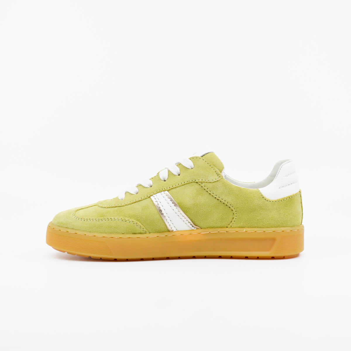 Soft casual suede leather sneaker for everyday wear. This versatile sneaker is available in a wide fit, featuring a rounded toe, calf suede leather upper, removable footbed and terry fabric lining. Adjustable cotton lace fastening. Handcrafted in Germany. European sizing. Leather upper, fabric lining, rubber sole. Flat heel.