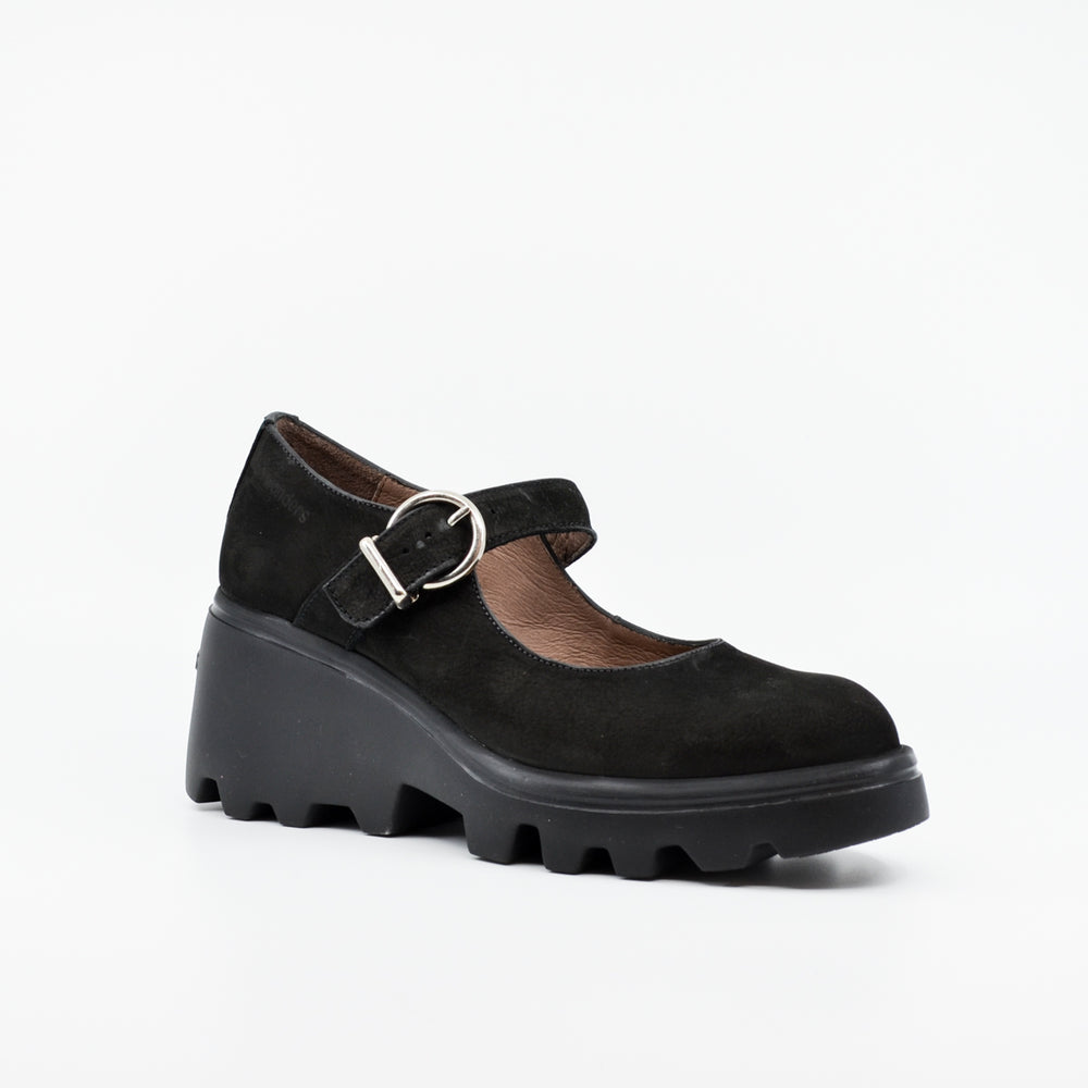 Perfect for work or everyday, these Mary-Jane shoes feature a rubber wedge sole and soft footbed for comfort and support all day long. Wear with skirts, dresses or pants easily. Adjustable strap over the instep with buckle fastening. European sizing. Made in Spain. Nubuck leather upper, leather lining, rubber sole. Mid wedge heel.